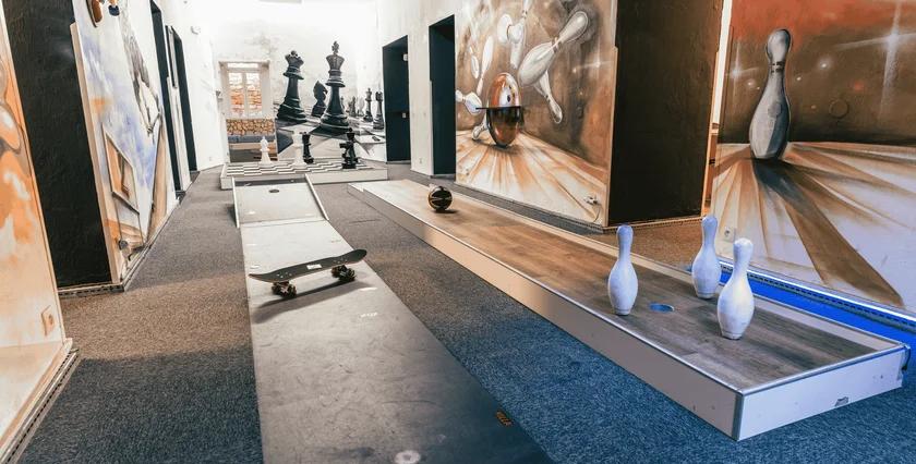 Mazemania Minigolf is an easy choice when a team just wants something simple that still gets people talking. It brings groups together around 19 themed indoor holes, where everyone moves between rounds at their own pace and ends up mixing naturally without much structure needed. It works well for after-work team nights in Smíchov or informal gatherings where not everyone knows each other yet. There’s space for around 40 people, plus darts, table football, and board games if people stick around.