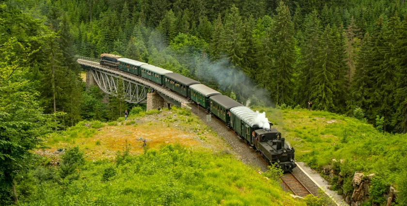 Zubačka takes groups out of Prague and up into the Jizera Mountains on the only cogwheel railway of its kind in Czechia, climbing one of the steepest railway lines in the country. It’s often booked as a full-day company trip, with up to 250 people travelling together in restored carriages, sometimes with commentary, a stop at the railway museum in Kořenov, or refreshments on board.