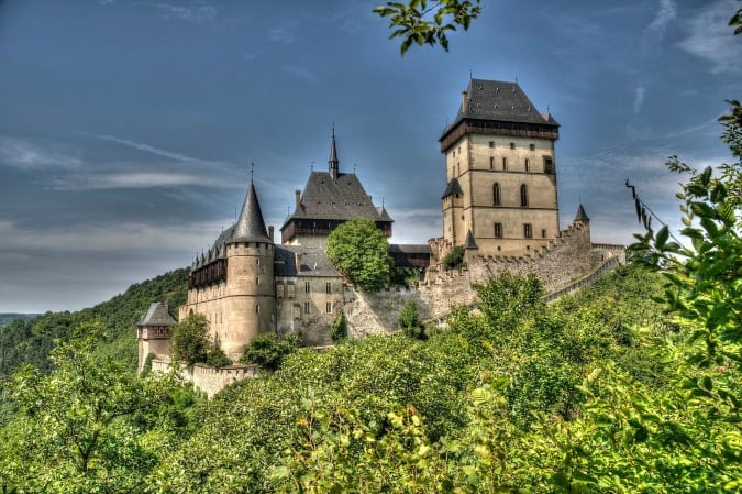 A Gothic stronghold built by King Charles IV to house the crown jewels and other royal relics in 1348, it’s located on a rocky promontory 30 kilometers (19 miles) from Prague.
