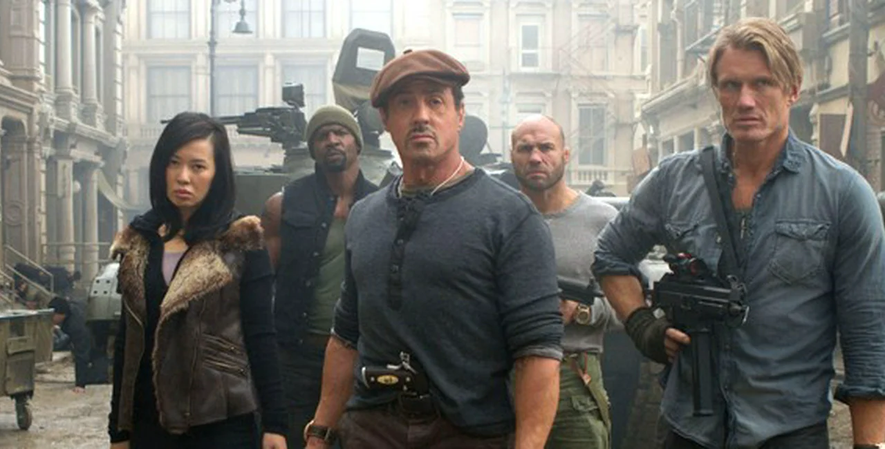 The film follows Barney Ross (Stallone) and his ragtag band of mercenaries, “The Expendables”: Lee Christmas (Jason Statham), Yin Yang (Jet Li), Gunner Jensen (Dolph Lundgren), Toll Road (Randy Couture), Hail Caesar (Terry Crews). New to the team is sniper Bill the Kid (Liam Hemsworth), while the character played by Mickey Rourke in the first film is absent this time around.