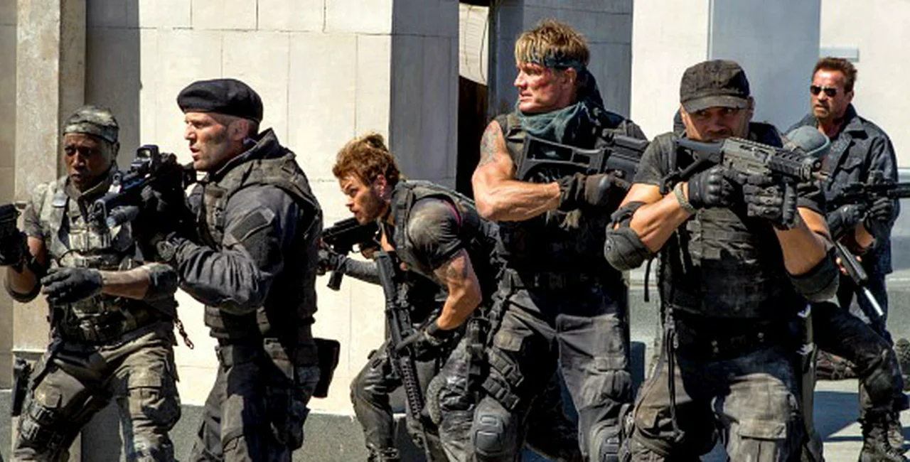 Of course, that impressive action-movie cast is still around to keep things interesting. Sylvester Stallone, Jason Statham, Dolph Lundgren, Randy Couture, and Terry Crews return as the titular team of mercenaries, joined this time around by Wesley Snipes’ Doc. He’s sprung from a foreign prison in the film’s waste-no-time opening setpiece, an over-the-top affair involving a train and a helicopter that recalls a similar sequence in Mission: Impossible.