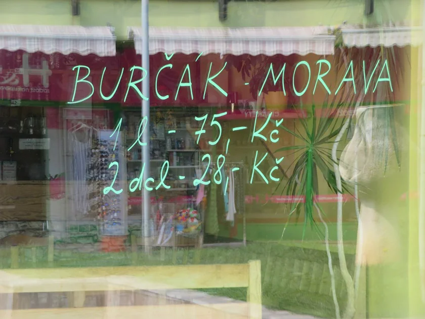Burčák is slightly fermented grape must, sold by the glass or in plastic take-away bottles. It is available shortly after the grape harvest, which occurs at different times each year based on the weather during the growing season.