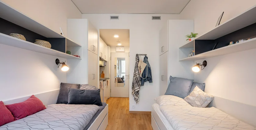 In an already crowded housing market, navigating an apartment search, landlord scams, and complicated leasing agreements can be a student’s worst nightmare. Fortunately, THE FIZZ Prague alleviates the anxiety of that part of the student experience. A thoughtfully designed living concept from beginning to end: here residents find not only furnished apartments where they can focus and relax, but also versatile common spaces for shared experiences and networking, have an access to an international community and receive an individualized service provided by house management.