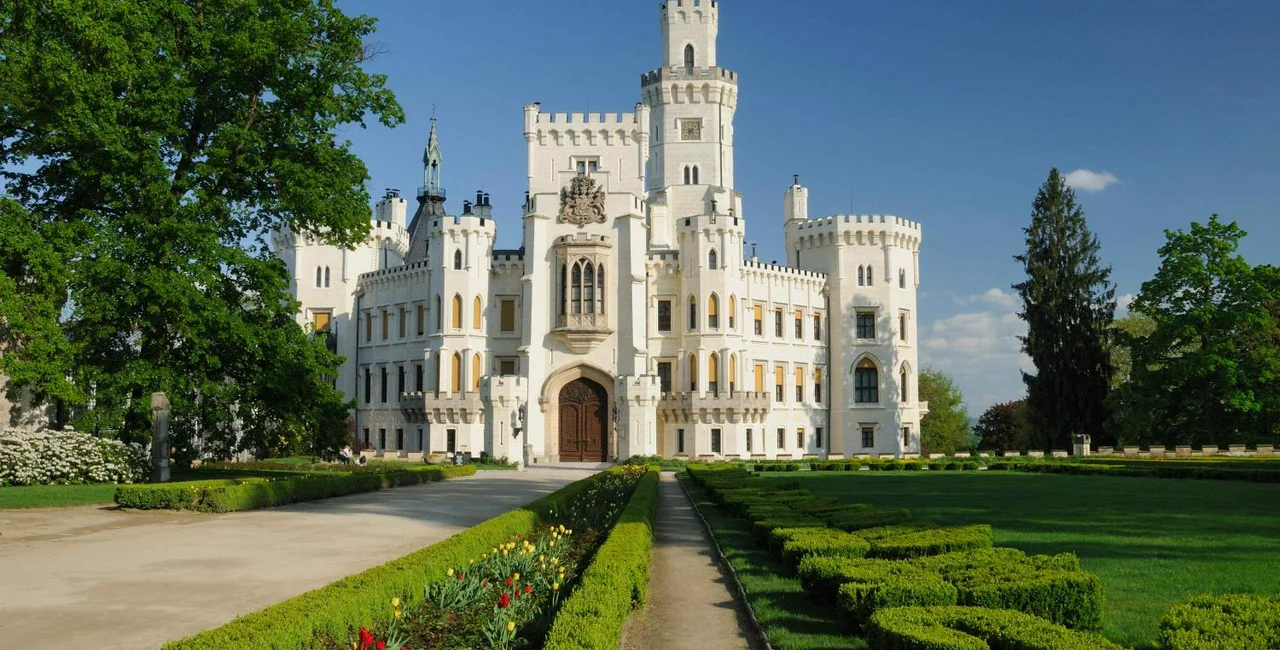 Film goers will recognize Hluboká, in South Bohemia, from films like the Czech fairy tale The Proud Princess (Pyšná princezna) and Sleeping Beauty (Šípková Růženka), among others. It was also in the horror film Underworld: Blood Wars and action-comedy Shanghai Knights. It dates to the 13th century but was remodeled in the Romantic style in the 19th century.