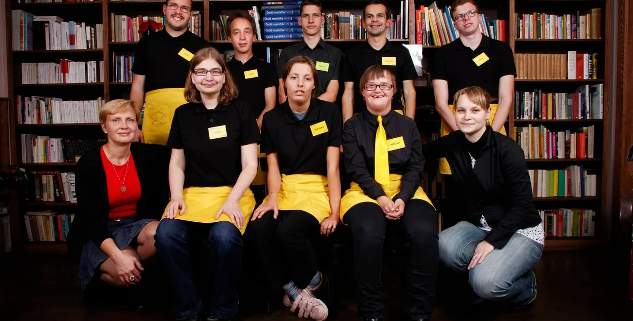 Café AdAstra in Prague 2, an initiative from the local charitable organization Zajíček na koni, currently employs around 30 workers with disabilities among their kitchen and waitstaff, including those affected by Down syndrome, epilepsy, autism, and other conditions.