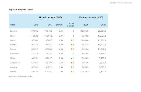 The ranking is based on Euromonitor International’s research in 100 countries and is based on the number of international arrivals that spend 24 hours or more in a city.