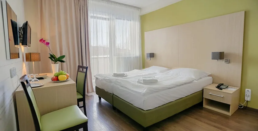 In the middle of the action is Ensana Thermal Sarvar, which sits directly 1,300 meters above one of the town’s two thermal springs. The water brought up to the hotel is significantly cooled before it’s used in a broad range of balneotherapies to protect or restore your health.