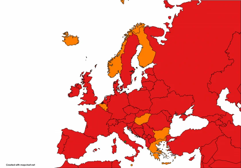 Most European countries are high-risk red on the travel map, which means that the rate of positive tests in the country is over 4 percent and the number of new COVID-19 cases per 100,000 inhabitants in the past two weeks is more than 250.
