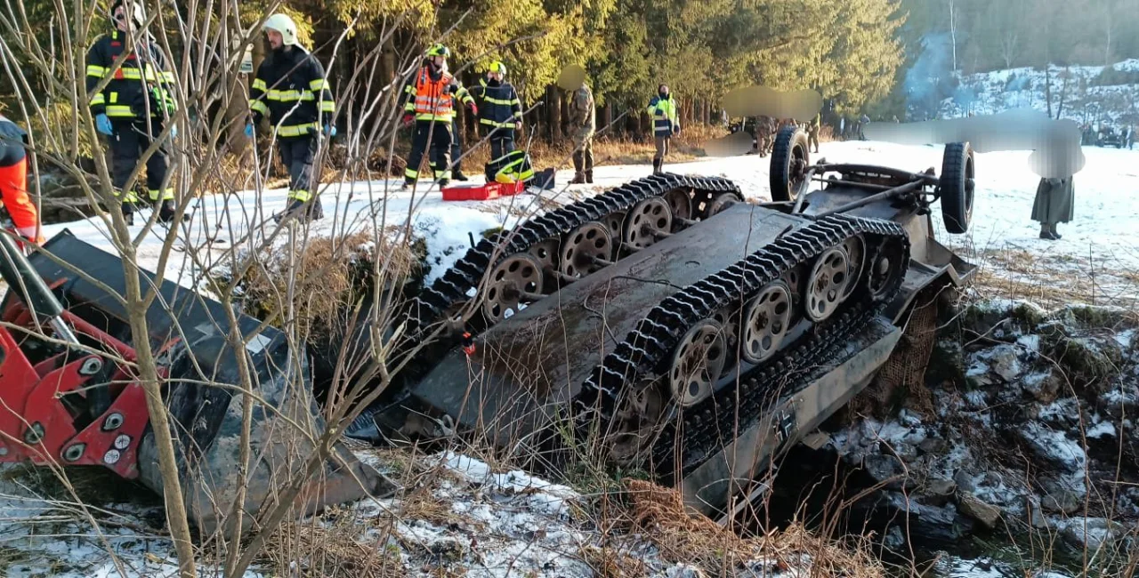 "The accident happened while crossing a bridge over a stream," police spokesperson Milan Bajcura told Czech News Agency. "The half-track armored vehicle likely skidded on the icy surface and overturned onto its right side."