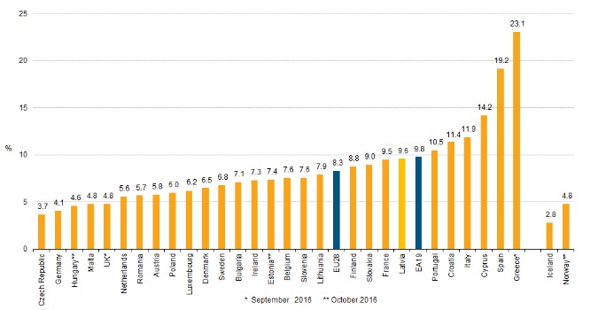 The Czech Republic remains the country with the lowest unemployment rate in the EU, according to figures released by Eurostat in January 2017.