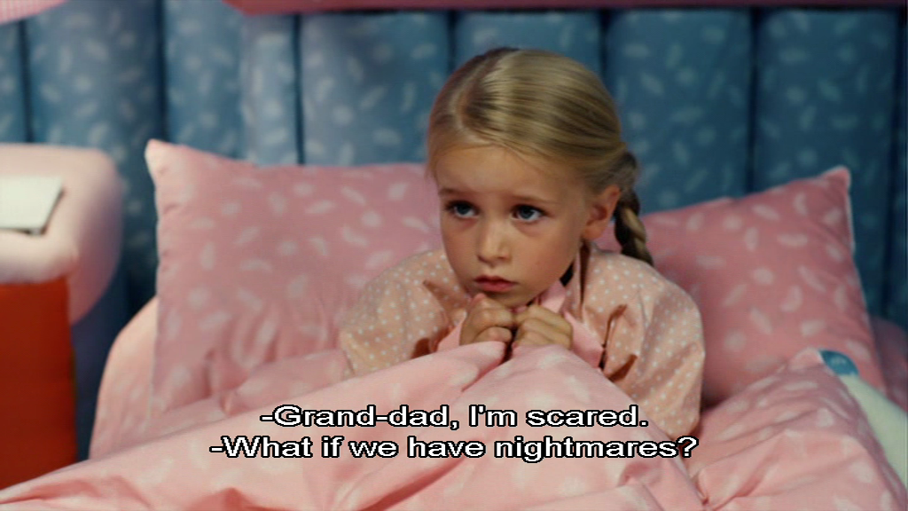 Grandfather (Bolek Polívka) was somehow, ahem, sucked into a duvet months ago, landing him in a billowy pink Doctor Parnassus-like Imaginarium that seems only slightly dissimilar to his reality. That leaves Grandmother (Eliška Balzerová, who won a Czech Lion last year for her role in Ženy v pokušení) as the only one who knows the secret of the dream-cleaning business: all the nightmares are kept locked in the basement.