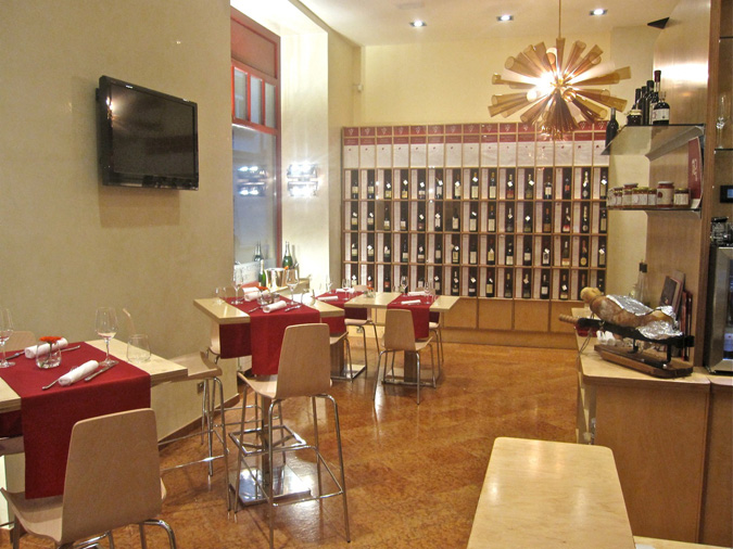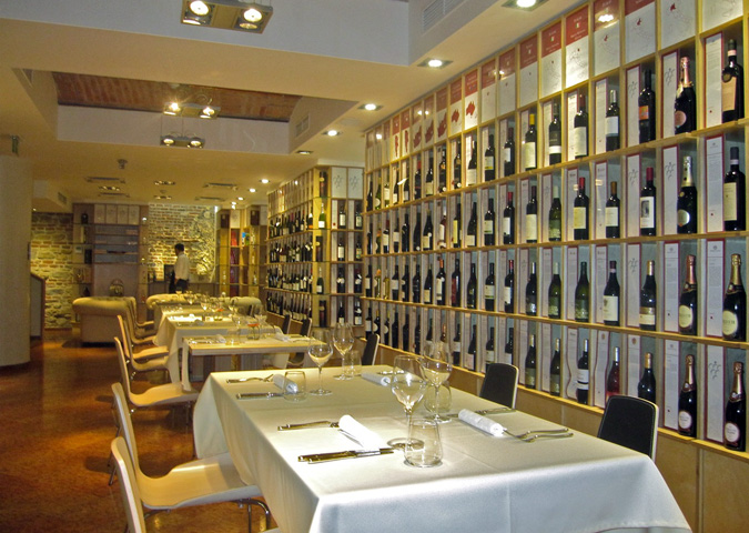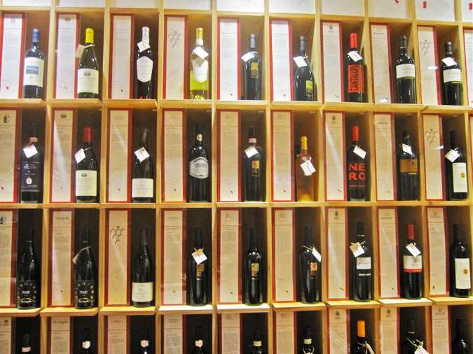 The displays of wine from every region of Italy are built into the walls and provide an appropriate and inviting backdrop.