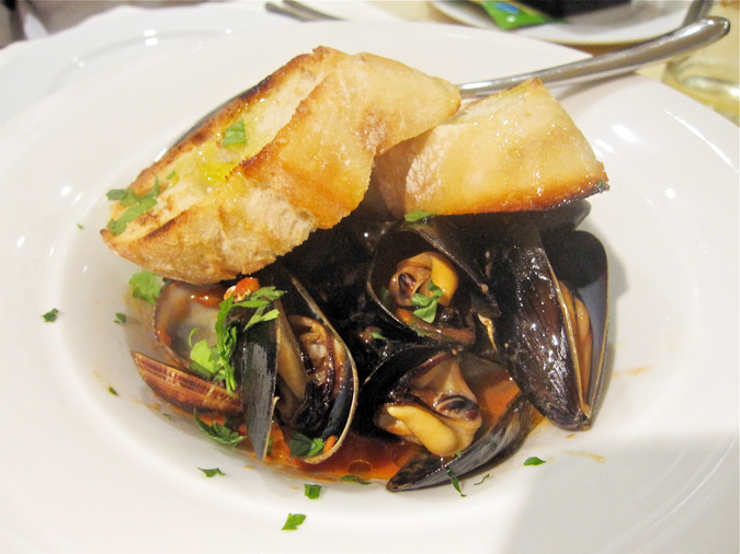 We had a small bowl of mussels and clams with parsley and a wine-infused sauce. Crusts of olive oil-drizzled bread sat on top.