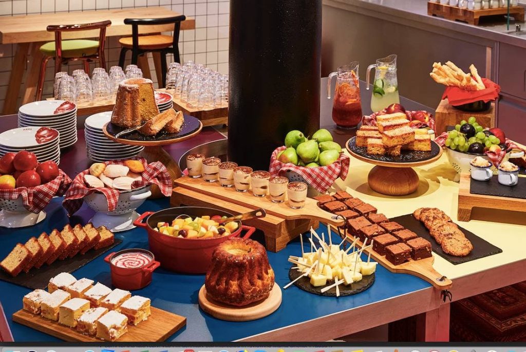 The line up of hot dishes included egg cocottes with mushroom cream, crunchy chicken tonkatsu, arancini fried rice balls with hermelin, grilled vegetables with chimichurri sauce, lasagne al forno, and some local palate pleasers: beef goulash, sausages, Prague ham, and a bounty of local breads and mini kolaček.