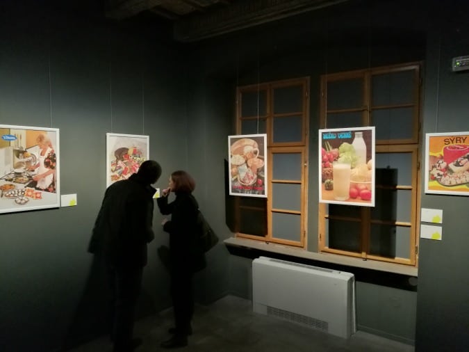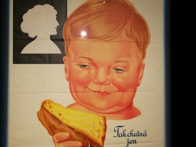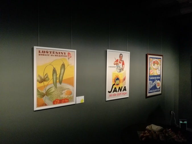 Rooms devoted to “Retro Food Porn” and “Shopping Behind the Iron Curtain” showcase everything from a Josef Lada-inked ad for meat products to illustrated campaigns for Pilsner Urquell and Baťa shoes. A third display, “Street Art,” features Tesla radios, Skoda automobiles, and other innovations from the Communist era.