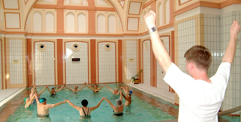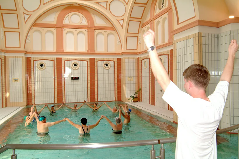 The two-star Hotel Pro Patria boasts a long tradition and a rich history. The spa hotel was opened in 1916, making it one of the oldest buildings in the spa town. The spa hotel, situated in the southern part of Spa Island in the immediate vicinity of the thermal mineral springs, has its own onsite balneotherapy center. Thanks to the short distance between the hotel room to the treatments, Pro Patria is particularly popular with guests with severely limited mobility. Its mud kitchen is equipped to offer 108 treatments per day.