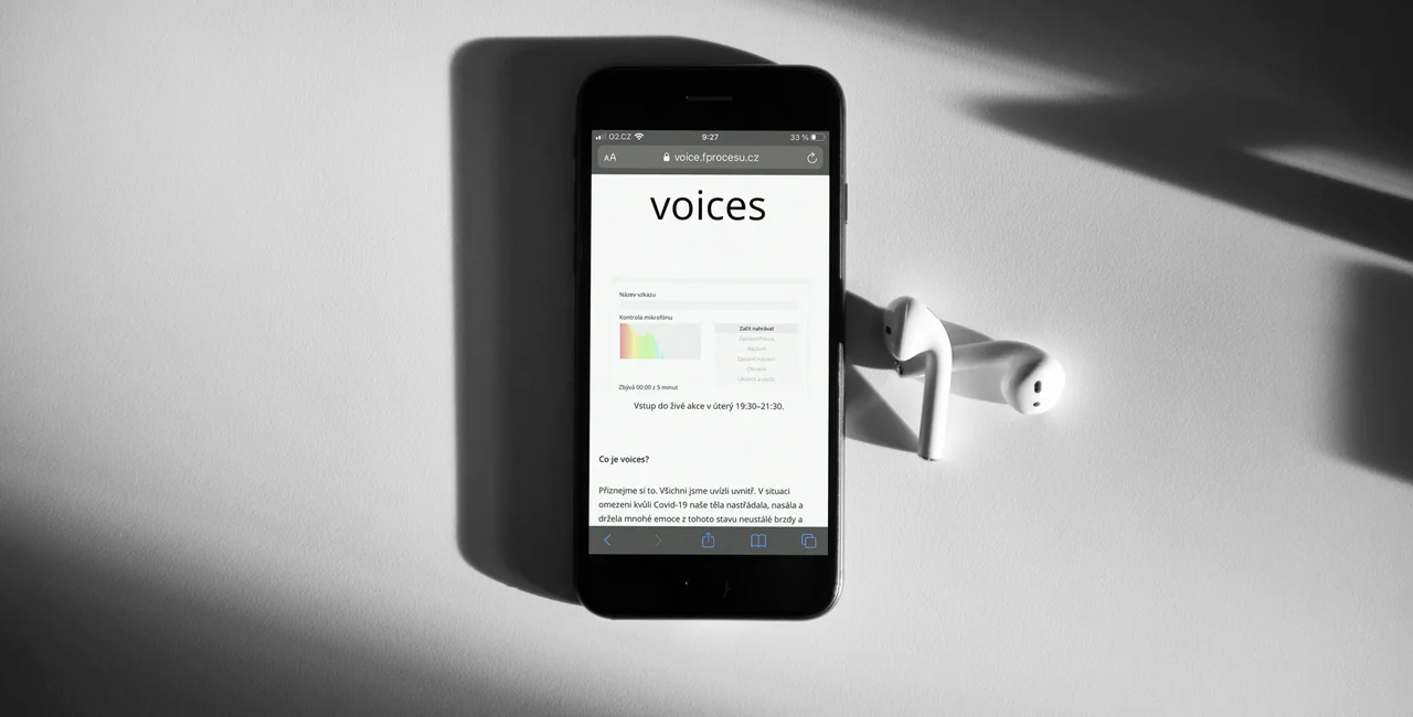 In the midst of the pandemic, Voices is now giving people a similar opportunity in the online space: on Tuesdays from 6:00-10:00 p.m. users visit the website, enter a topic of discussion, and start recording. The interface is available in both Czech and English.