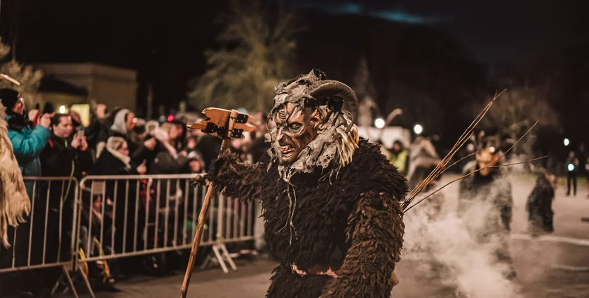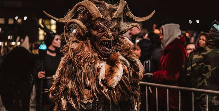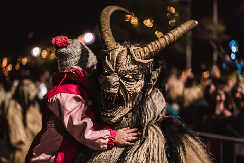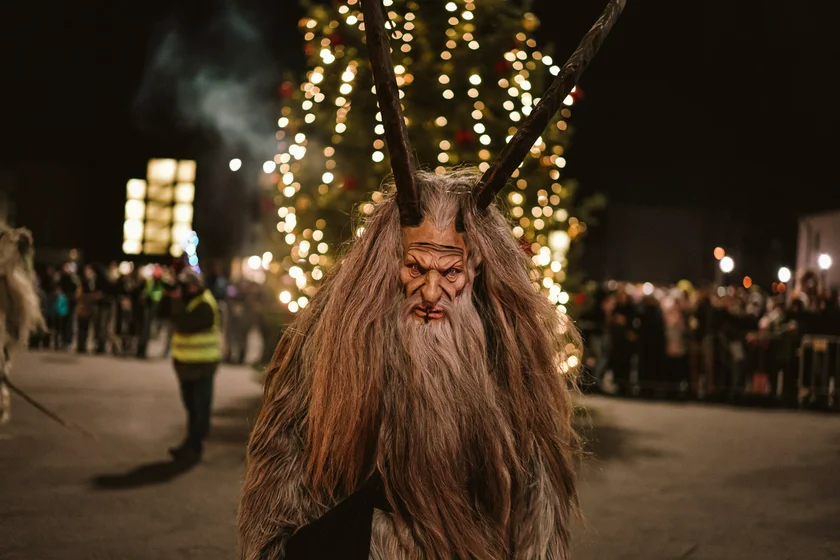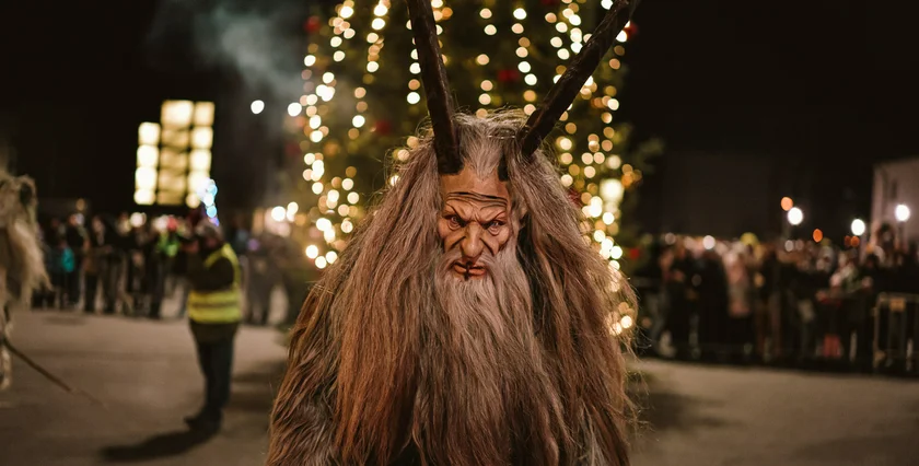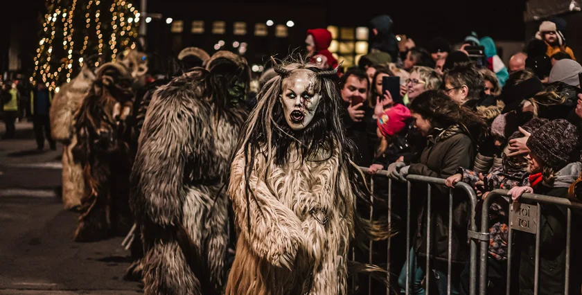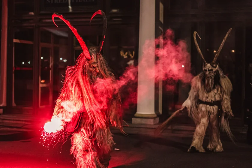 Elaborately costumed Krampuses tend to appear on their own or join other Krampuses for a scary parade through the center of a town, without the help of Mikuláš or an angel.