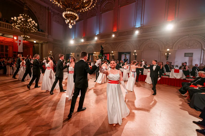 The evening kicks off with a grand opening ceremony followed by the first dance by members of the Committee of Young Ladies and Gentlemen. Other attendees will then be called to the dancefloor by the traditional announcement of the “Alles Walzer!”