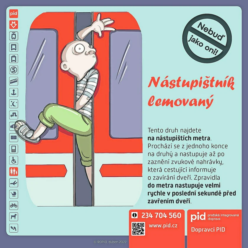PID says such behavior is not only dangerous and bothersome to other passengers but can disrupt metro operations. That's why the Prague metro etiquette campaign asks straphangers not to enter the doors at the last minute but wait patiently on the platform.