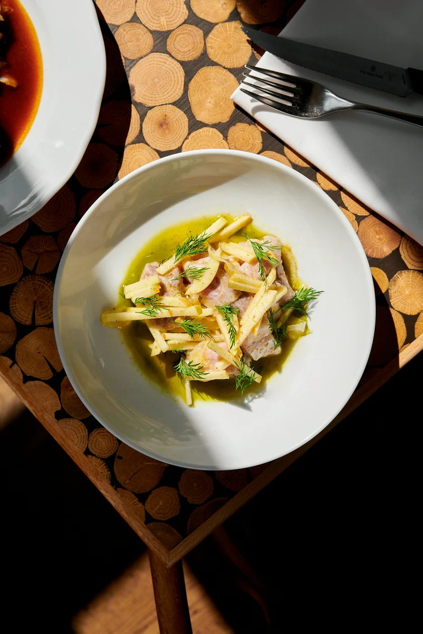 Prague steakhouse Čestr has made a name for itself with its honest cuts of beef from Fleckvieh cattle paired with sauces and sides served family style in rustic yet modern surrounds. During the holiday season, Čestr leans into Czech tradition, serving carp specialties alongside its juicy steaks grilled over charcoal. A three-course menu gives you a flavorful taster with choices ranging from a marinated carp, shallot, fennel, apple, and dill starter to brisket and various steaks. Make your reservation here.