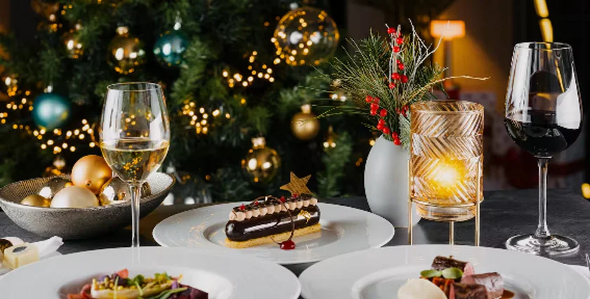 Celebrate the holidays at Prague’s Hotel Augustine from Dec. 24 with a four-course dinner by Chef Jan Horák (2,590 CZK) paired with live jazz. Dec. 25 offers a brunch (1,800 CZK non-alcoholic; 4,290 CZK with rosé champagne) featuring Mediterranean seafood, Czech charcuterie, and desserts, with live music from a guitarist and saxophonist. End the day with a second four-course dinner (2,590 CZK). Call +420 266 112 280 or email restaurant.augustine@luxurycollection.com to reserve.
