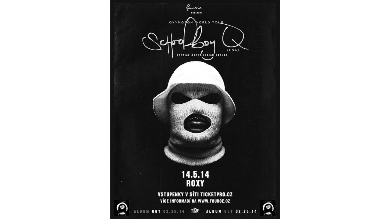 One of the world’s biggest hip hop stars of today, US rapper Schoolboy Q is about to perform in the Czech capital city Prague. The gig will take place on 14th May 2014 at the Roxy club as part of his European tour in order to promote his latest album, Oxymoron which has been released in February 2014.