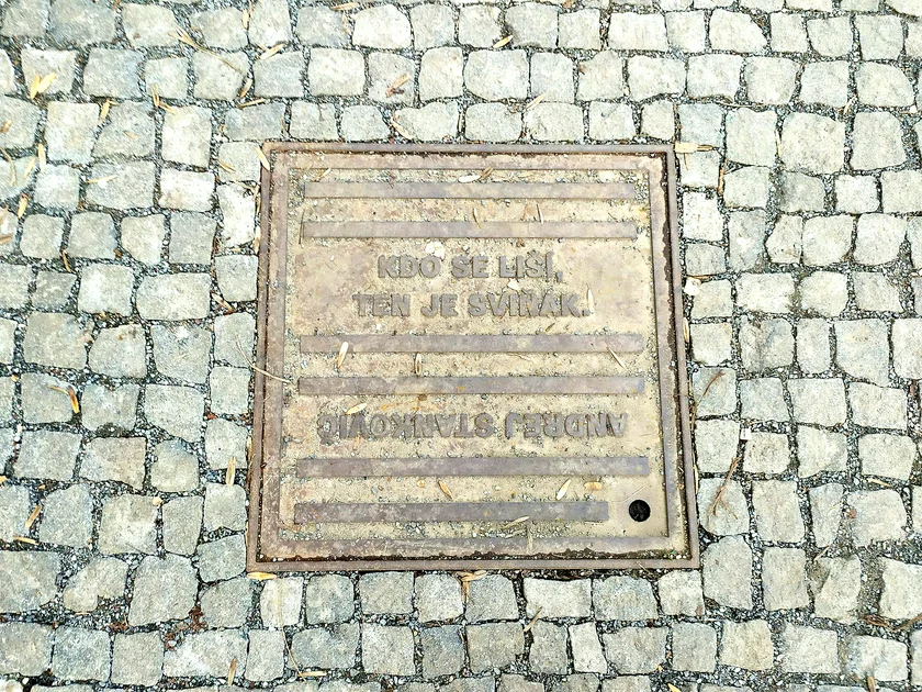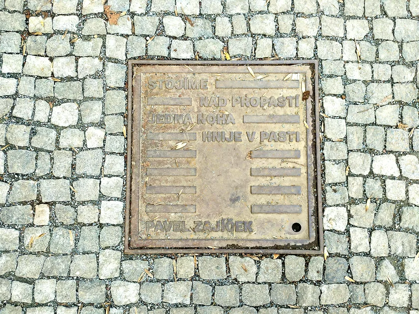 The covers were made by artist Viktor Karlík between 2000 and 2013, and installed near Museum Kampa on Nov. 17, 2021, the anniversary of the Velvet Revolution. Funding came from Prague’s Art for the City, and it also had support from the Prague 1 district and was under the auspices of Prague 1 Mayor Petr Hejma.