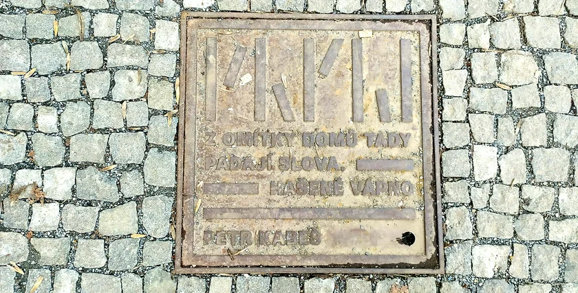 The project called Voices from the Underground (Hlasy z podzemí) consists of 14 metal utility covers. They can be found in a row in the path leading to Museum Kampa., and will be there for the foreseeable future.