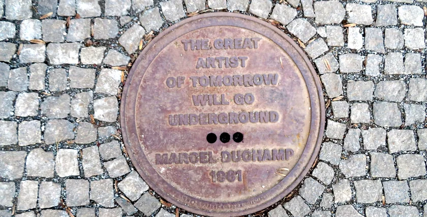 “An imaginary point, but also the motto of the whole set of square hatches, is the only circular cover with the words of Marcel Duchamp from 1961: ‘The great artist of tomorrow will go underground.’ Among other things, his statement perfectly captures the fates of real cultural figures and their works in the totalitarian regimes of the second half of the 20th century, and the pervasiveness of Duchamp's thought is deepening again today,” Karlík added.