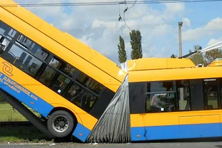 Zlín Traffic Accident Leaves Trolleybus Airborne