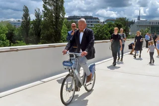 Mayor Bohuslav Svoboda and Deputy Mayor Zdeněk Hřib were among the first to cross the new footbridge linking Holešovice and Karlín.