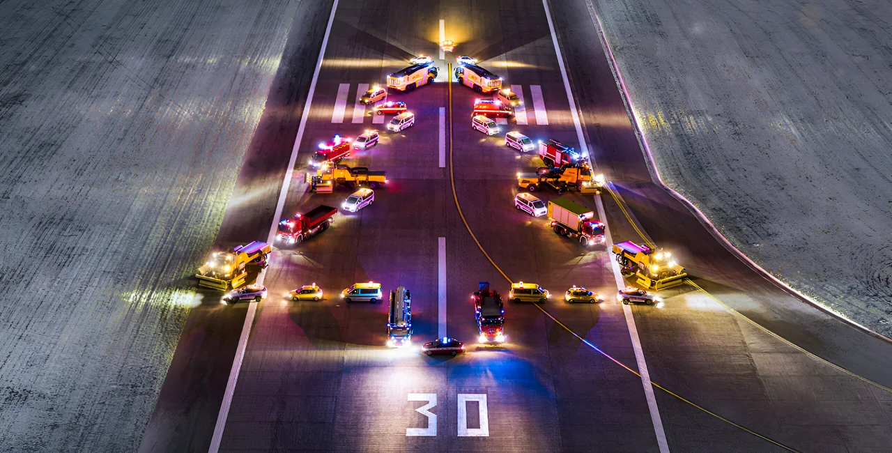 Various vehicles lit up in the form of a Christmas tree for the airport's holiday campaign, while a Christmas market and concerts will be held on Dec. 12.