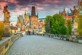 Two people were arrested while tagging a pillar on Charles Bridge, one of Prague’s main landmarks