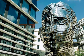 David Černý's latest sculpture, a spin on his famed rotating Franz Kafka head in Prague, can now be seen at an apartment complex in Santa Monica.