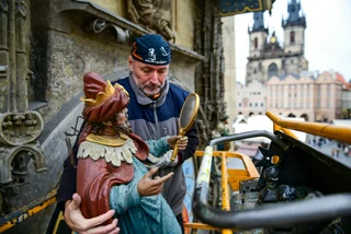 PHOTO GALLERY: Prague's most famous landmark gets its clock cleaned