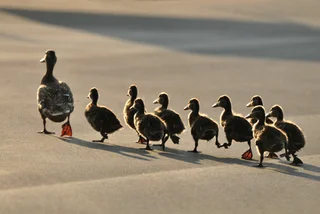 Seven baby ducks fell into a sewer grating at the Palmovka bus depot; luckily a bus driver noticed the distressed mother and called for help.