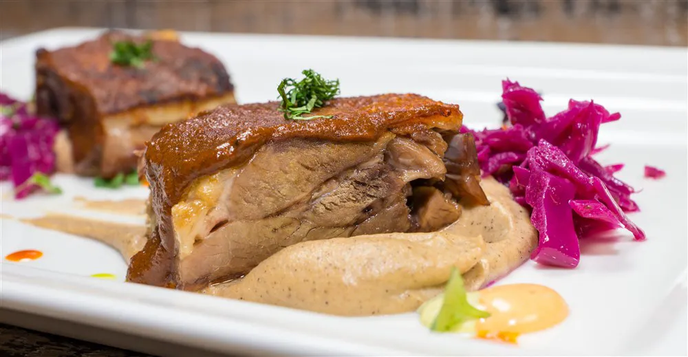 Avant-garde Czech bistro. The menu is a creative blend of Czech produce with occasional hints of Japanese flavors, crafted from a theatrical kitchen stage of charcoal and steam.