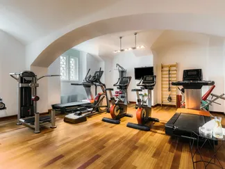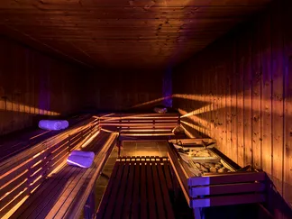 water massage jets. The sauna and steam room are perfect for boosting immunity and relieving stress. A fitness studio