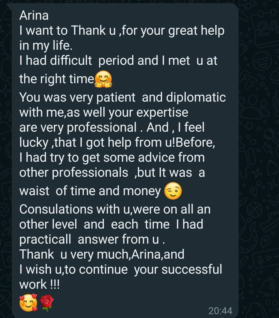 Consultations: English/Russian in the format of video chat/audio chat/text messages