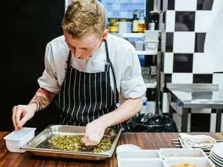 Avant-garde Czech bistro. The menu is a creative blend of Czech produce with occasional hints of Japanese flavors, crafted from a theatrical kitchen stage of charcoal and steam.