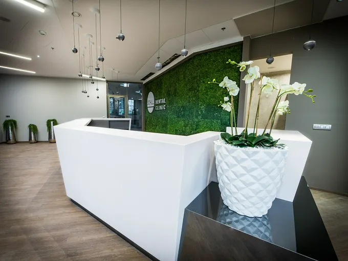 The newly established dental clinic is modern, spacious, well equipped and follows high quality standards of a world class dental clinic. The contemporary design of the interior will make you feel at ease and our reception and waiting area look more like a cafeteria than a dental clinic at first sight. Our pleasant personnel will serve you hot and cold beverages while you wait and will help you fill in all the necessary documents before you meet your personal dentist.