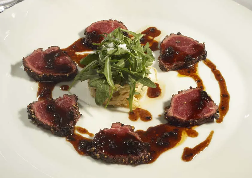 Avant-garde Czech bistro. The menu is a creative blend of Czech produce with occasional hints of Japanese flavors, crafted from a theatrical kitchen stage of charcoal and steam.