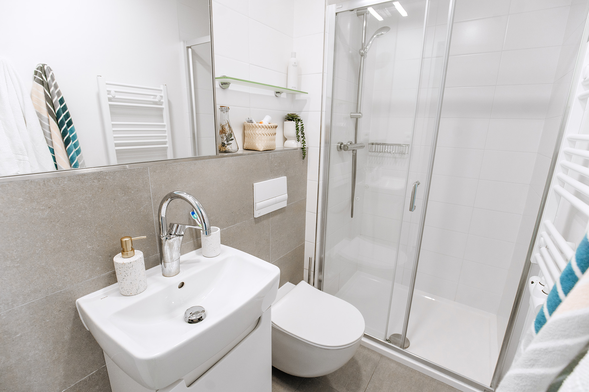 • En-suite modern tiled shower room offers toilet, washbasin with mirror and more storage space