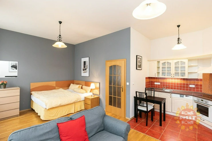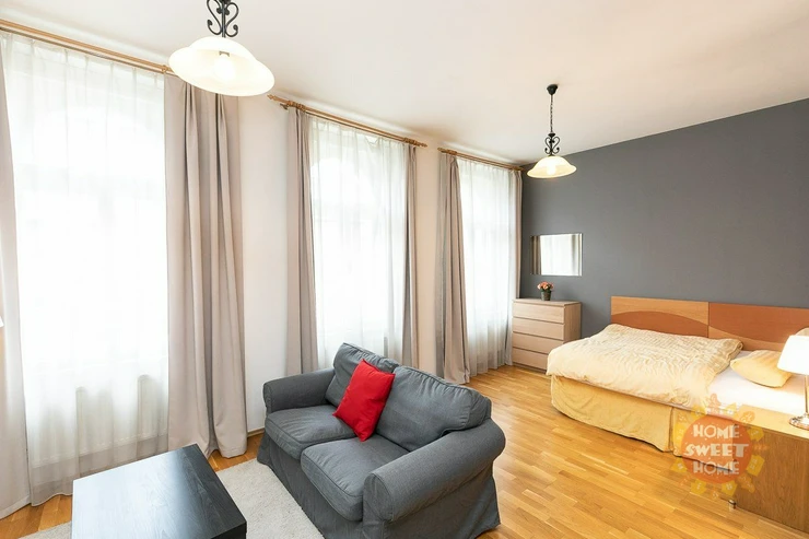 We offer to rent a very nice sunny apartment 1 + kt in Vinohrady, street Sazavska. The apartment is located in the reconstructed brick building with an elevator. The total floor area is 35 sqm. The apartment is fully equipped with stylish modern furniture. There is a very nice kitchen with appliances. In the bathroom, there is a shower. Floating floors and tiles. Parking space for a monthly fee (2.000CZK + 21%VAT). Excellent location in the center of Prague. There are excellent civic amenities. Restaurants, cafes, and shops all around. Rich cultural life - theaters and music clubs all over the neighborhood. Excellent transport accessibility to all parts of Prague. Tram stop or metro station Namesti Miru only a few minutes walk from the house.