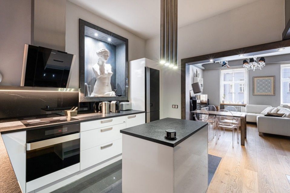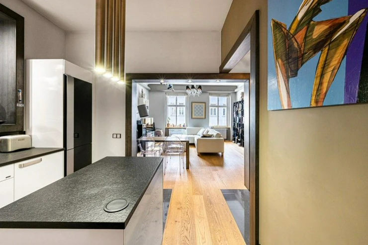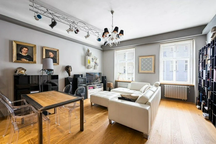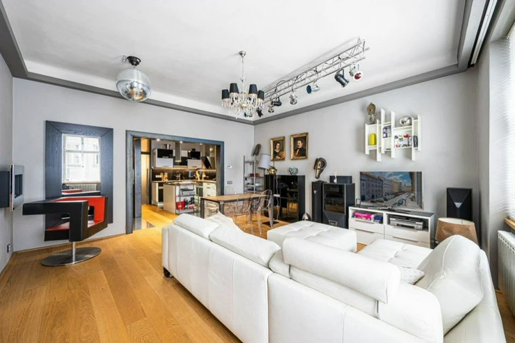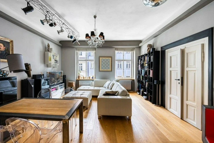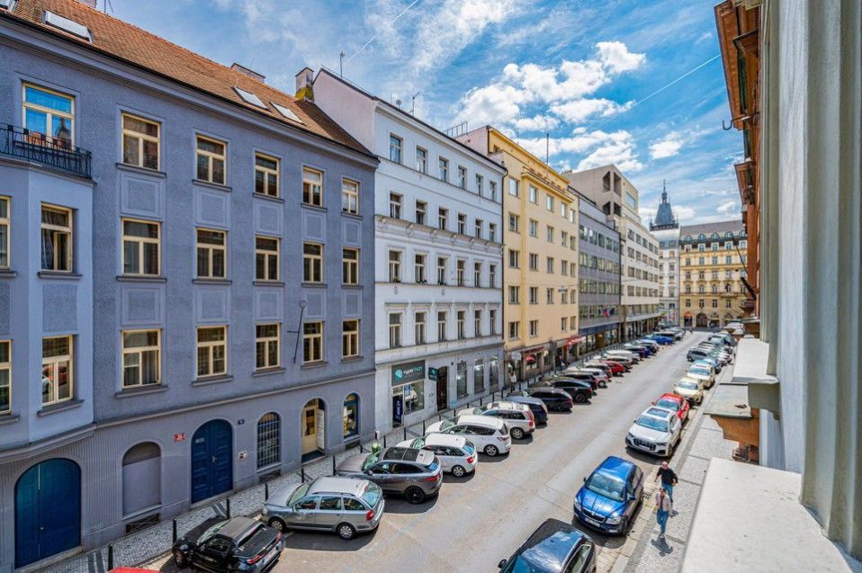 Completely renovated and furnished 2+1 apartment (77m2) on the 3rd floor of an apartment building without a lift in the center of Prague in an extremely attractive location of New Town with complete civic amenities on site, a few minutes' walk from the Národní třída metro station and Karlovo náměstí.
