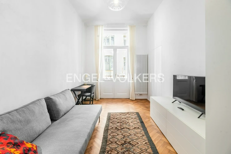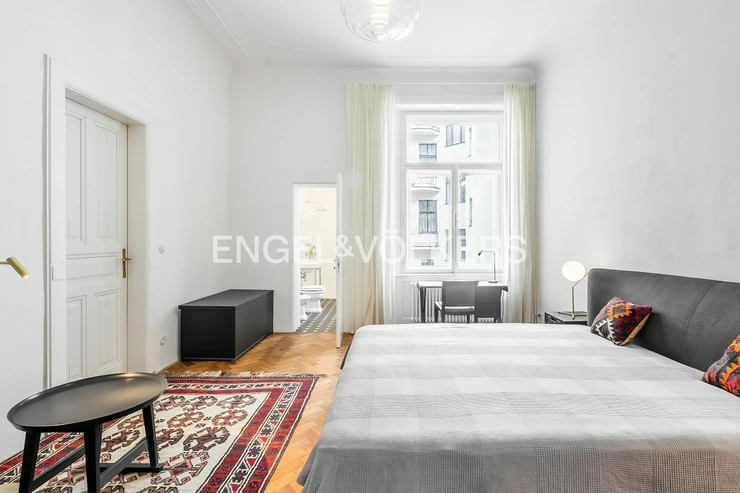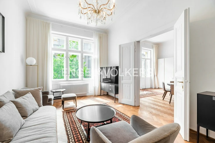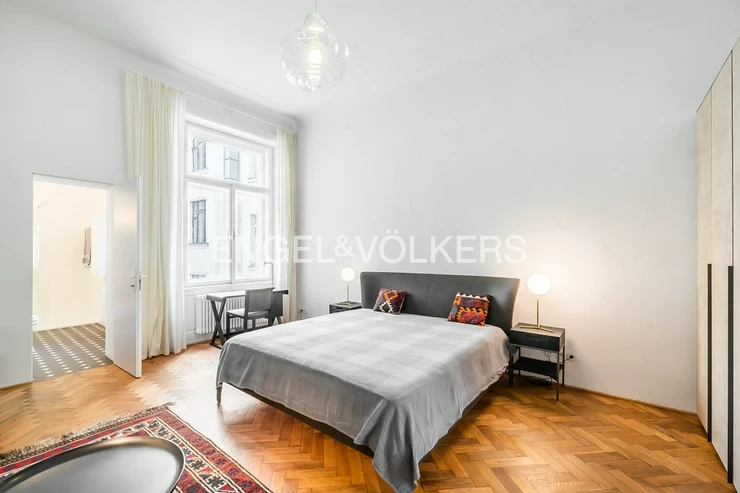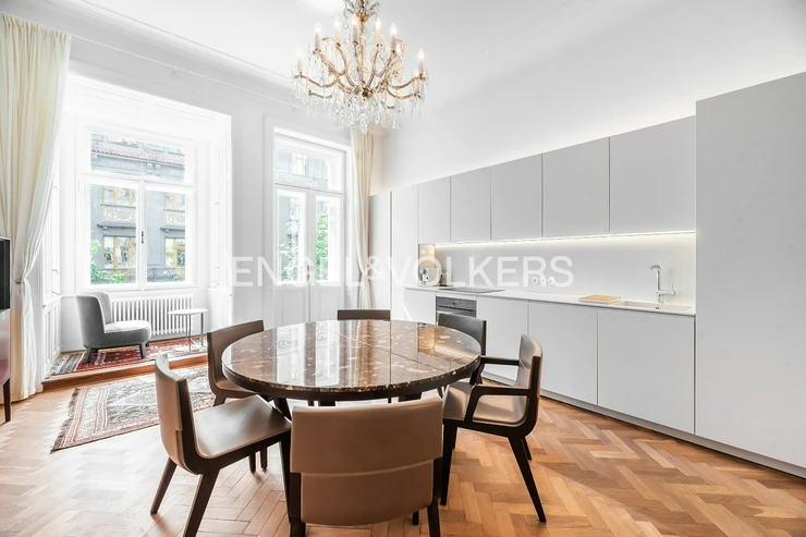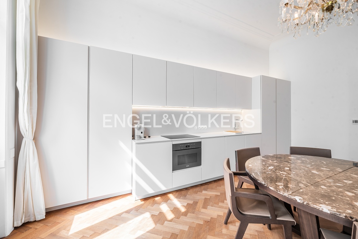 The apartment has been completely renovated and offers everything you can expect from an exclusive property including wooden parquet floors, custom-made furniture, stucco ceilings and other advantages.