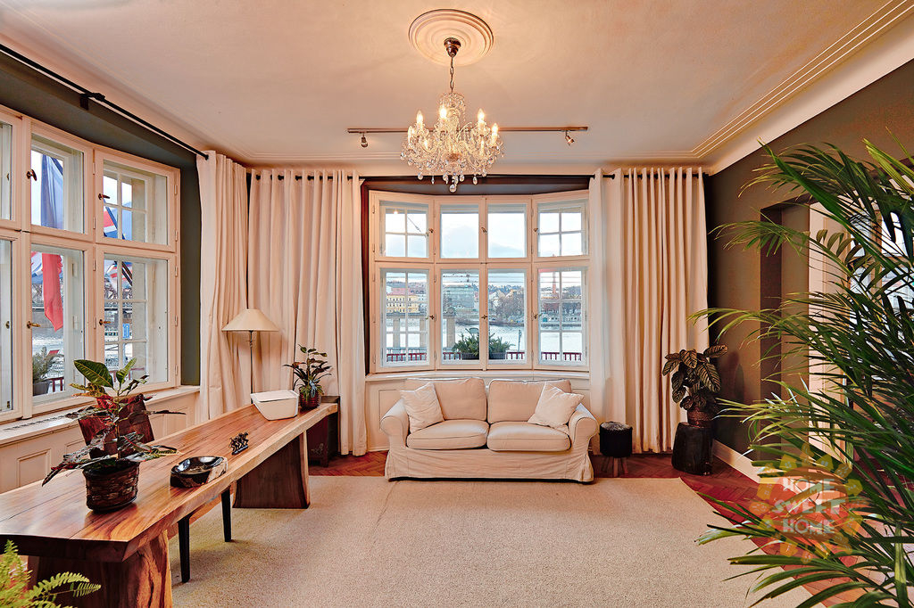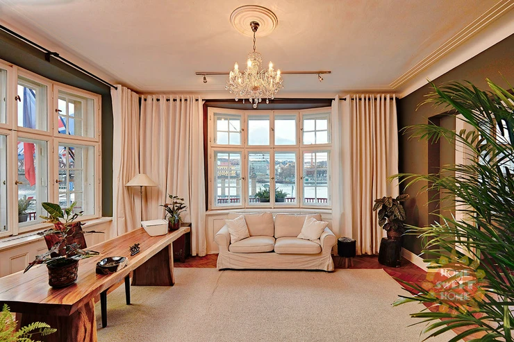 We are offering for long-term or mid-term rent a stunning furnished 4+kk apartment with a total area of 180 m², situated on the 1st floor of a well-maintained building with an elevator. The apartment boasts panoramic views of the Vltava River and Rašínovo nábřeží.