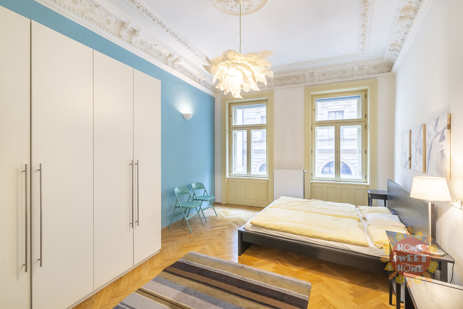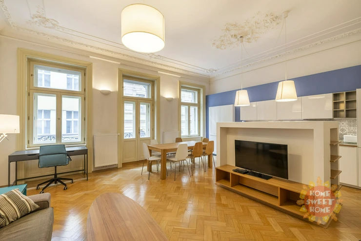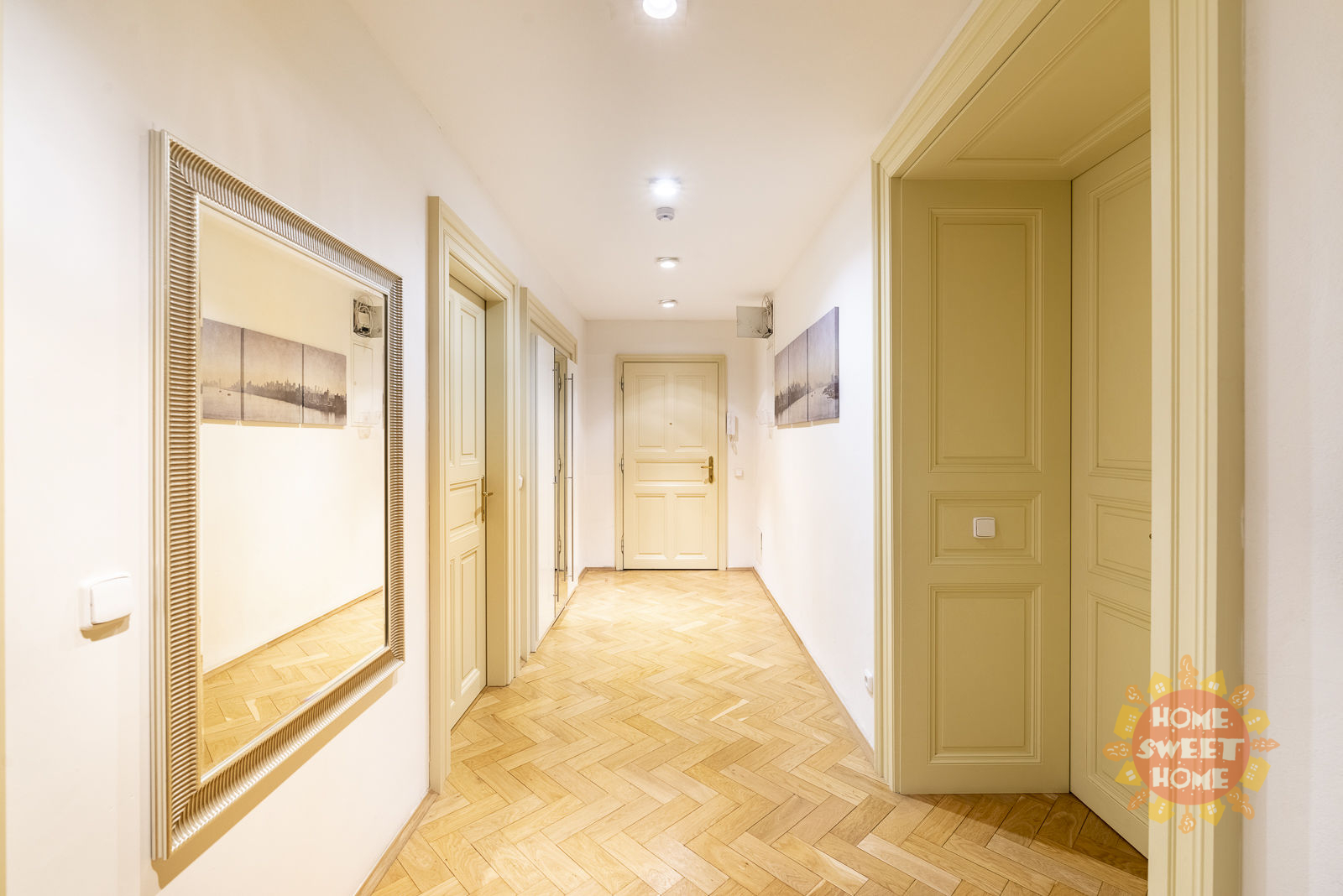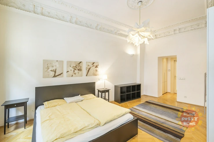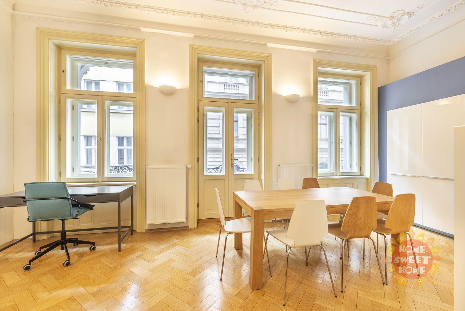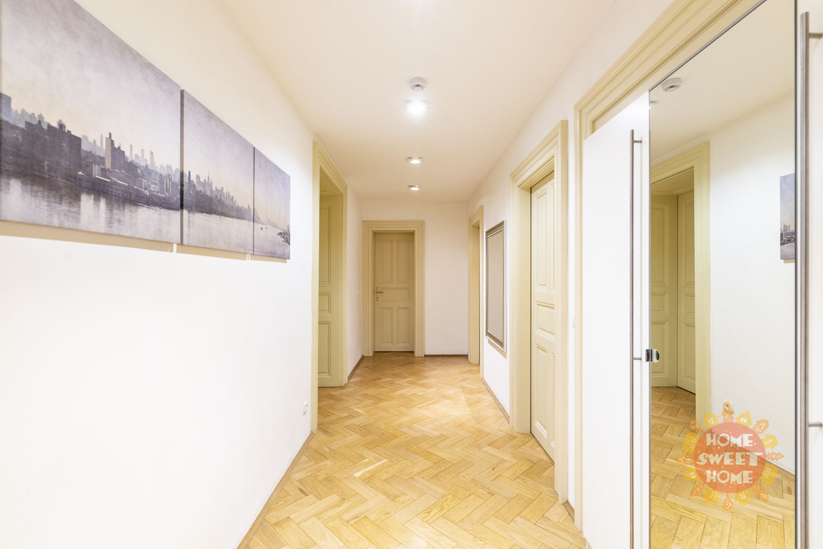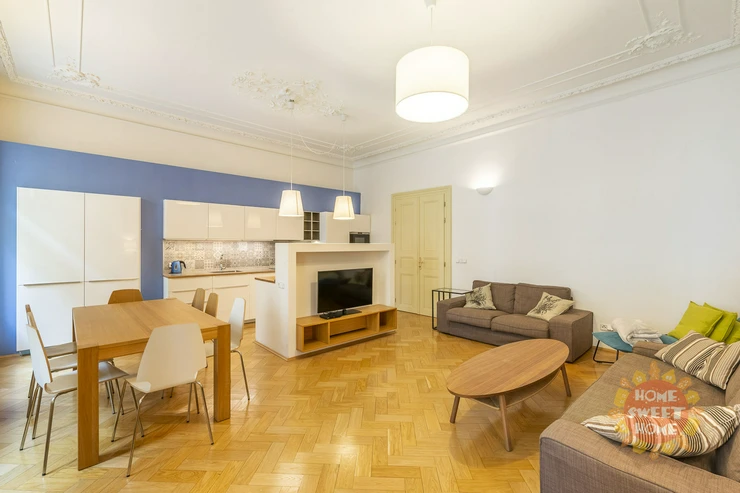 We offer for rent a completely renovated, tastefully furnished, quiet 3+kk apartment (108m2) in the very heart of the center of Prague. The luxurious, sunny apartment is located on the 2nd floor of a nice brick apartment building with an elevator, in Soukenická Street, near Náměstí Republiky.