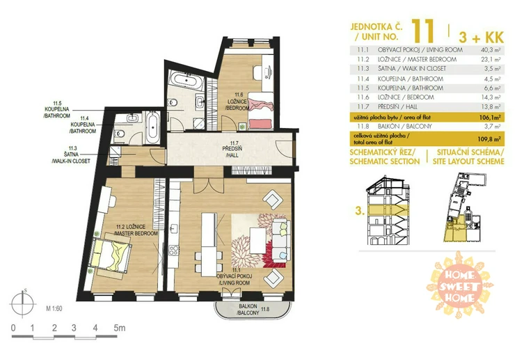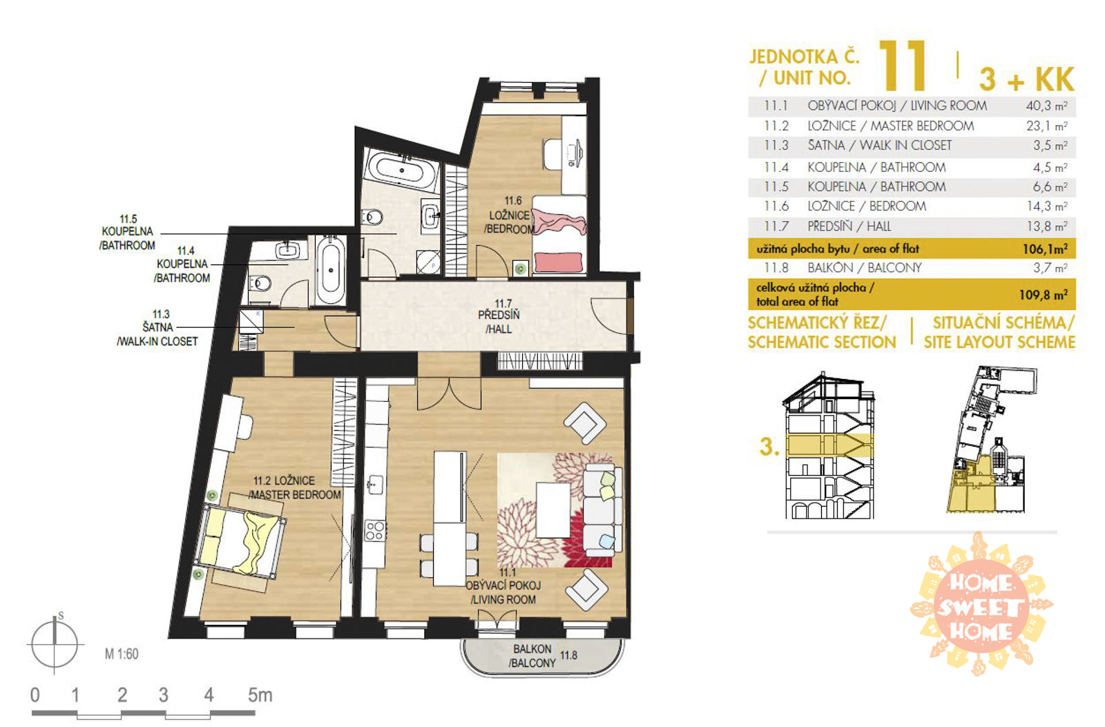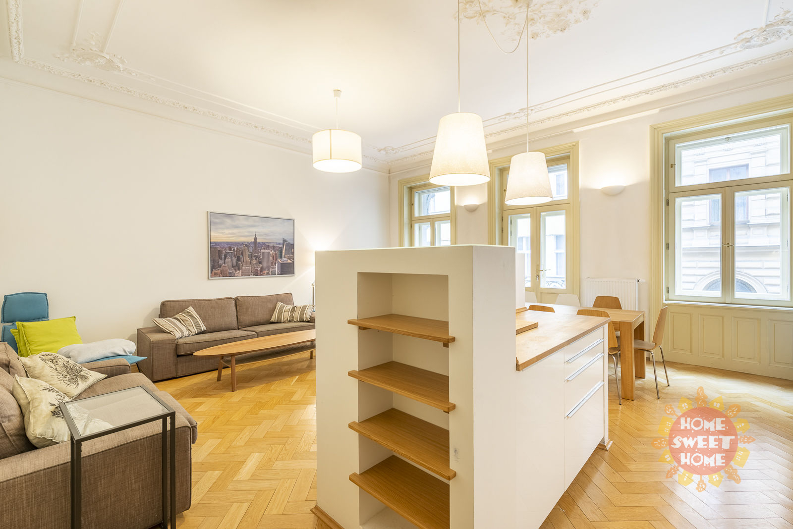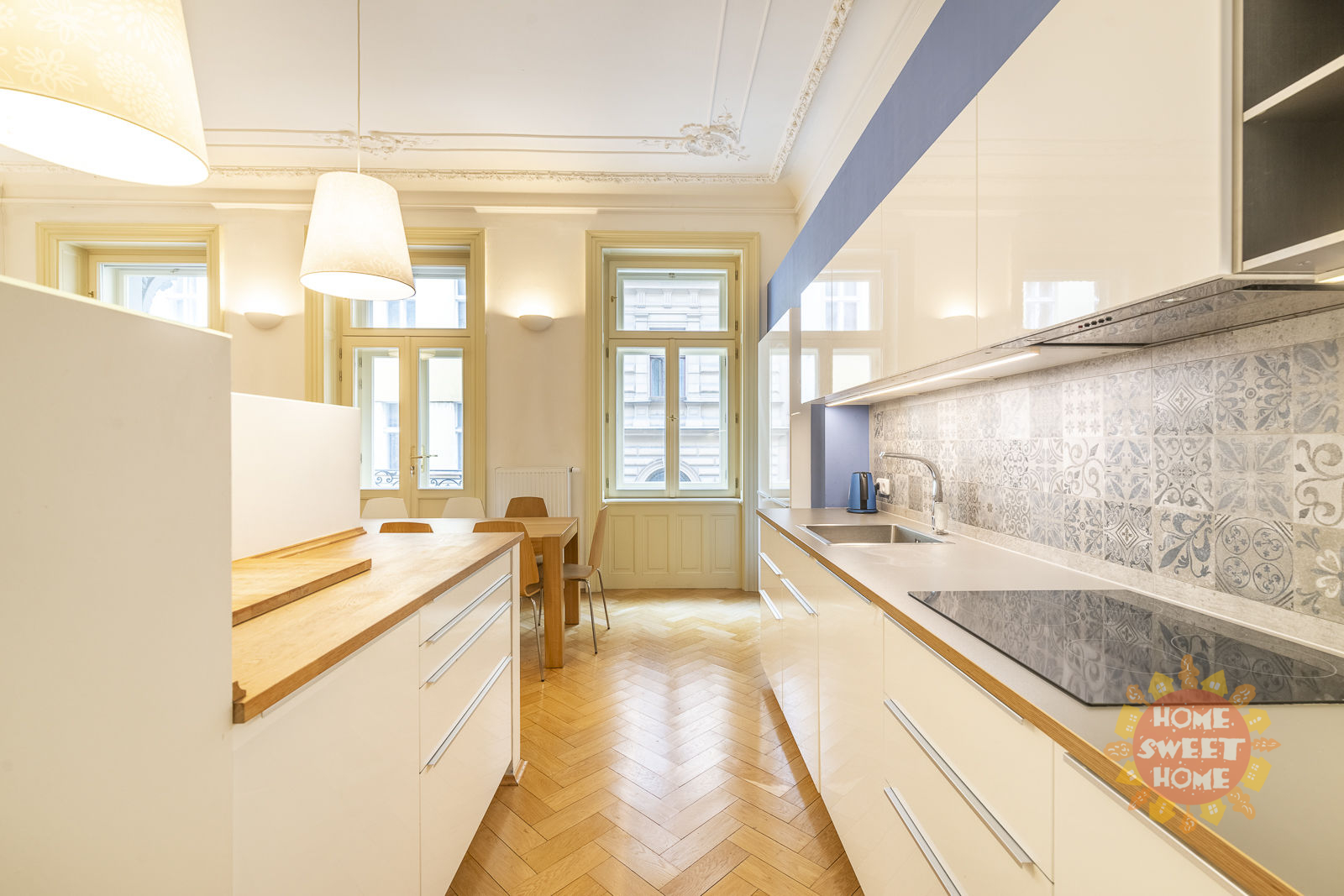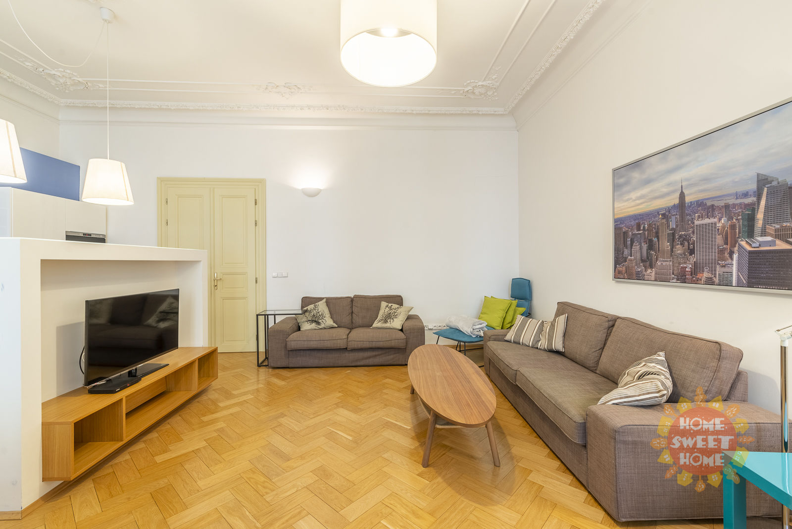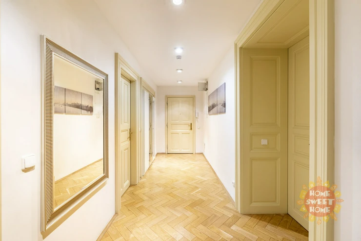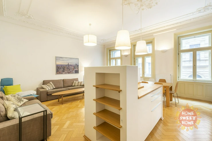 We offer for rent a completely renovated, tastefully furnished, quiet 3+kk apartment (108m2) in the very heart of the center of Prague. The luxurious, sunny apartment is located on the 2nd floor of a nice brick apartment building with an elevator, in Soukenická Street, near Náměstí Republiky.